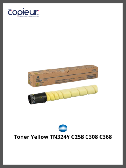 Toner Yellow TN324Y compatible avec les imprimantes Konica Minolta Bizhub C258, C308, et C368, offrant une capacité de 26 000 pages pour des impressions professionnelles éclatantes et précises.