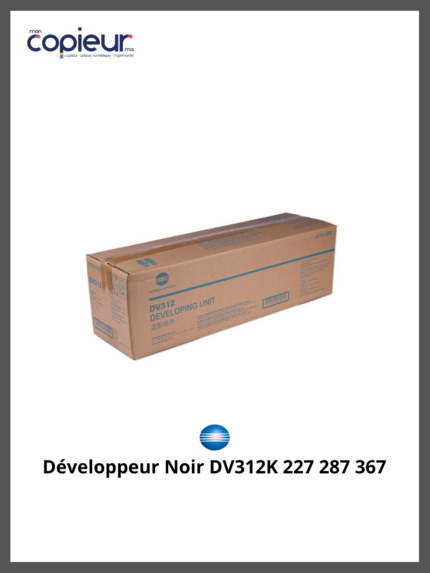 Le Développeur Noir DV312K garantit une performance optimale pour les imprimantes Konica Minolta C227, C287 et C367, avec une capacité de 600 000 pages, idéal pour des impressions monochromes constantes et fiables.