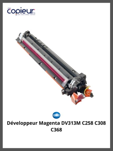 Le Développeur Magenta DV313M est compatible avec les imprimantes Konica Minolta Bizhub C258, C308 et C368. Avec une capacité de 600 000 pages, il assure des impressions magenta de haute qualité et précises.