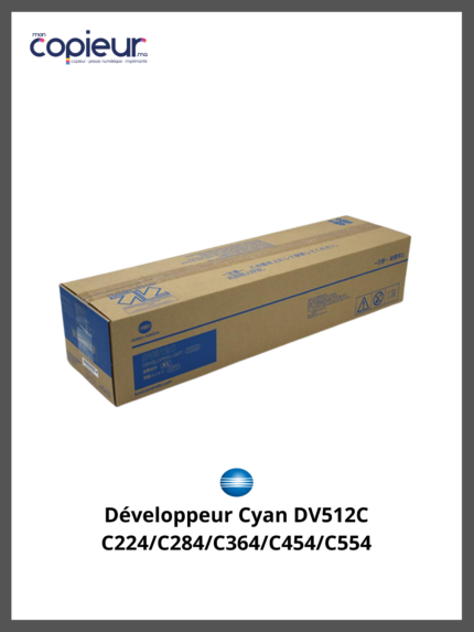 Développeur Cyan DV512C compatible avec les imprimantes Konica Minolta Bizhub C224, C284, C364, C454 et C554, pour des impressions aux couleurs cyan éclatantes et durables.