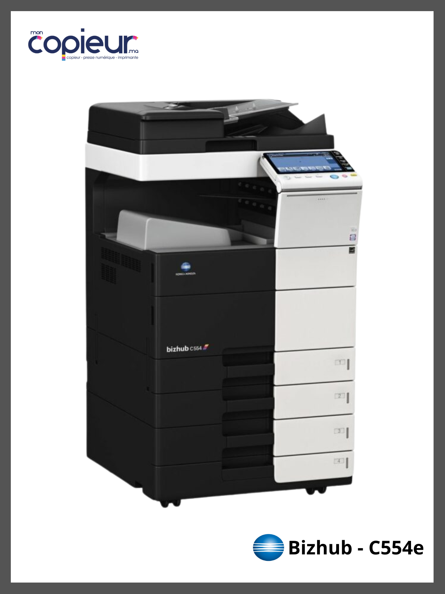 L’imprimante Konica Bizhub C554e se distingue par ses performances professionnelles exceptionnelles, en particulier pour les environnements de travail nécessitant une grande efficacité et une qualité d’impression irréprochable.