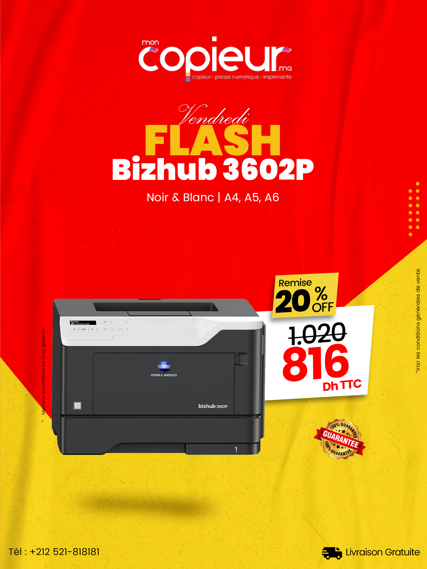 La Konica Minolta bizhub 3602P est une solution fiable, économique et performante pour les entreprises recherchant une imprimante monochrome A4 capable de gérer efficacement des volumes d’impression moyens, tout en offrant une qualité constante et professionnelle.