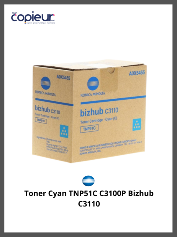Le toner noir TNP51K est une cartouche de toner conçue pour les imprimantes Konica Minolta bizhub C3100P et C3110.
